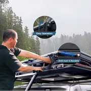 This pop-up canopy camper delivers comfort and durability in a sleek non-drilled welded aluminum design. With an impressive 67" interior height when popped up, a 99" roof length, and a 54" wide body, it offers roomy living in a compact footprint. Sleep comfortably with a 98" × 53" × 70" sleeping space, wrapped in durable 285GSM poly-cotton fabric built to handle all-season conditions.